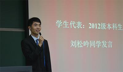 随后本科新生代表杨帆发言,她首先感谢了所有关心他们的老师和师兄师姐们,并表示一定要做到:修身养性、提升素质,脚踏实地、刻苦学习,尊敬师长、团结友爱,严于律己、遵守校规。然后是研究生新生代表张申健发言,他认为机会与选择才是北大给予我们的无价的财富,既然已经踏上地球科学的求索之路就要学会淡定从容,不断的学习,让自己拥有迎接困难的资本。2012级本科生刘松吟作为在校学生代表讲述了自己在地空的学习生活感受以及他自己对于北大人的理解,并对学弟学妹们进行了勉励。