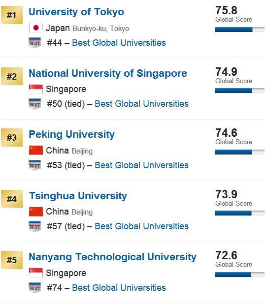 位列全球第53位,再次位居中国大学首位,亚洲地区大学第3位。