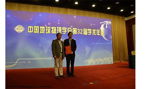黄清华教授因其在地球电磁学和地震物理学方面的突出贡献获得了2016年度中国地球物理科学技术奖科技创新一等奖,成为本年度唯一获此殊荣者,也是自2012年设立该奖项以来第3位获一等奖的个人。中国地球物理学会副理事长陈晓非院士为黄清华教授颁发了获奖证书。