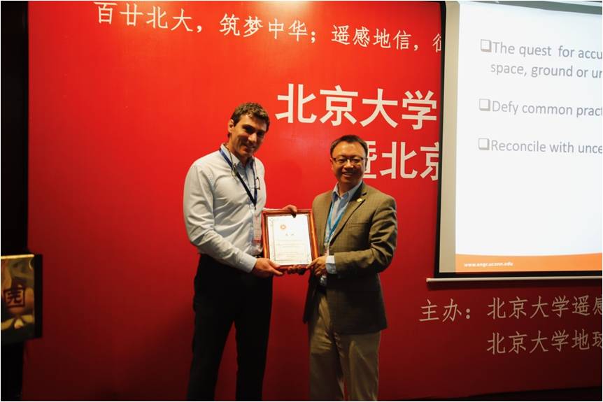 遥感地信名家讲坛”第十三讲报告,Emmanouil Anagnostou教授应邀做了题为“Remote Sensing and Modeling to Advance Flood Risk Management”;杜谦教授作了“Collaborative Representation for Hyperspectral Remote Sensing Image Analysis”的论坛特邀报告。同时,作为国际著名期刊Journal of Hydrology和JSTARS的主编,Emmanouil Anagnostou教授和杜谦教授分别就期刊办刊宗旨、稿件范围、文章类型、体例格式、稿件评审等做了详细介绍,与大家分享了期刊特色和投稿经验。之 后,两位主编与参会青年学者就论文发表过程中遇到的问题进行了深入交流与讨论。作为致谢,遥感所所长洪阳教授为两位主编赠送了北大遥感地信特邀报告纪念牌 匾。