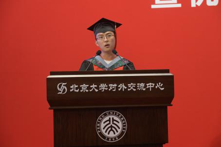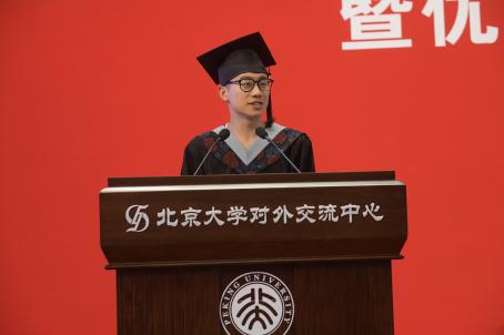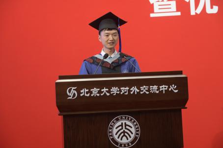 2015级地质专业的王霄作为硕士毕业生代表发言。他回首三年以来在燕园求学的酸甜苦辣,并感谢生活的经历,感谢这三年与之朝夕相处的老师、同学和朋友。王霄还引用了今年习近平总书记来北大视察说的话,“爱国励志,求真力行。”王霄认为,总书记的嘱托正是毕业季最宝贵的礼物,要牢记总书记的嘱托,不辱时代使命,不负人民期望,真正成为合格的社会主义建设者和可靠接班人,为实现中华民族伟大复兴的中国梦而奋斗。