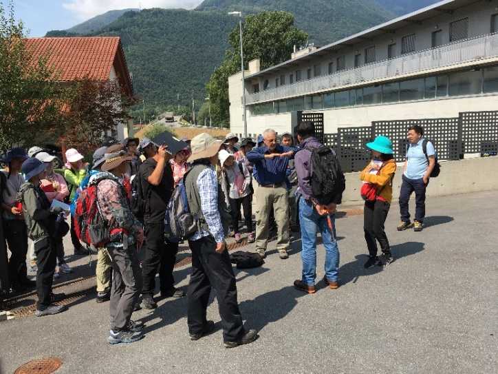 阿尔卑斯实习考察团前往瑞士Gotthard隧道博物馆,在瑞士地质调查局前局长Peter Heitzmann等人的陪同下进行参观学习。Gotthard隧道博物馆的讲解员首先对Gotthard隧道的地理位置、建造过程以及影响意义等进行了介绍。Gotthard隧道位于瑞士南部,全长57.3Km,穿越了岩性十分复杂的阿尔卑斯山脉,其建造过程从论证到完工历时30余年,克服了地质学、工程学上的重重困难,地质学家为隧道的设计与施工奉献了大量的智慧。Gotthard隧道于2016年建成通车,沟通了瑞士中部地区与意大利米兰大区,极大地缓解了地区之间的交通运输压力。胡哲同学对隧道的地震防护机制进行了提问,Peter Heitzmann解释隧道所处区域并不在地震带内,至于可能发生的小型地震可以通过隧道周围的岩体和水体对地震波进行传导疏散,从而起到一定的抗震防护作用。报告最后,同学们观看了Gotthard隧道建造过程的纪录片。