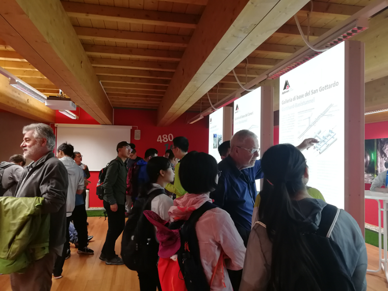报告结束后,同学们在Peter Heitzmann及馆内工作人员的陪同下,对Gotthard隧道博物馆进行了参观。章美希等同学对Gotthard隧道的双轨道救生系统进行提问,得到了Peter Heitzmann耐心细致的解答。