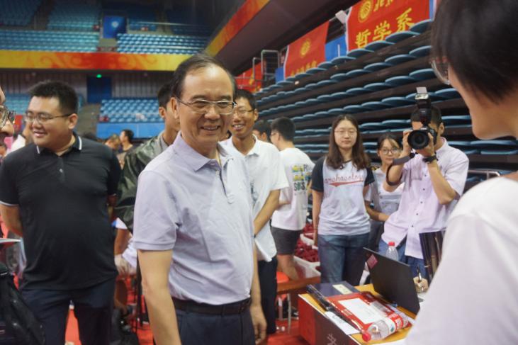 林建华校长到达迎新现场,询问各院系迎新情况,对新同学们表示热烈的欢迎,对我院的迎新工作队伍表示充分的肯定。