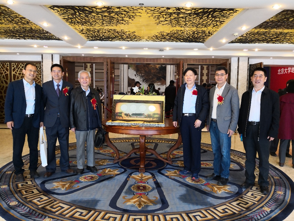会前西北大学地质学系张国伟院士和舒德干院士向北大地质学系赠送110周年华诞礼物