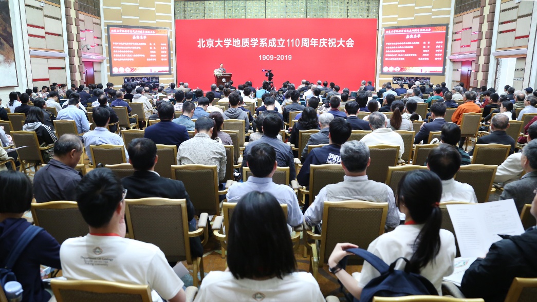地质学系110周年系庆大会在英杰交流中心隆重举行,图为大会现场。