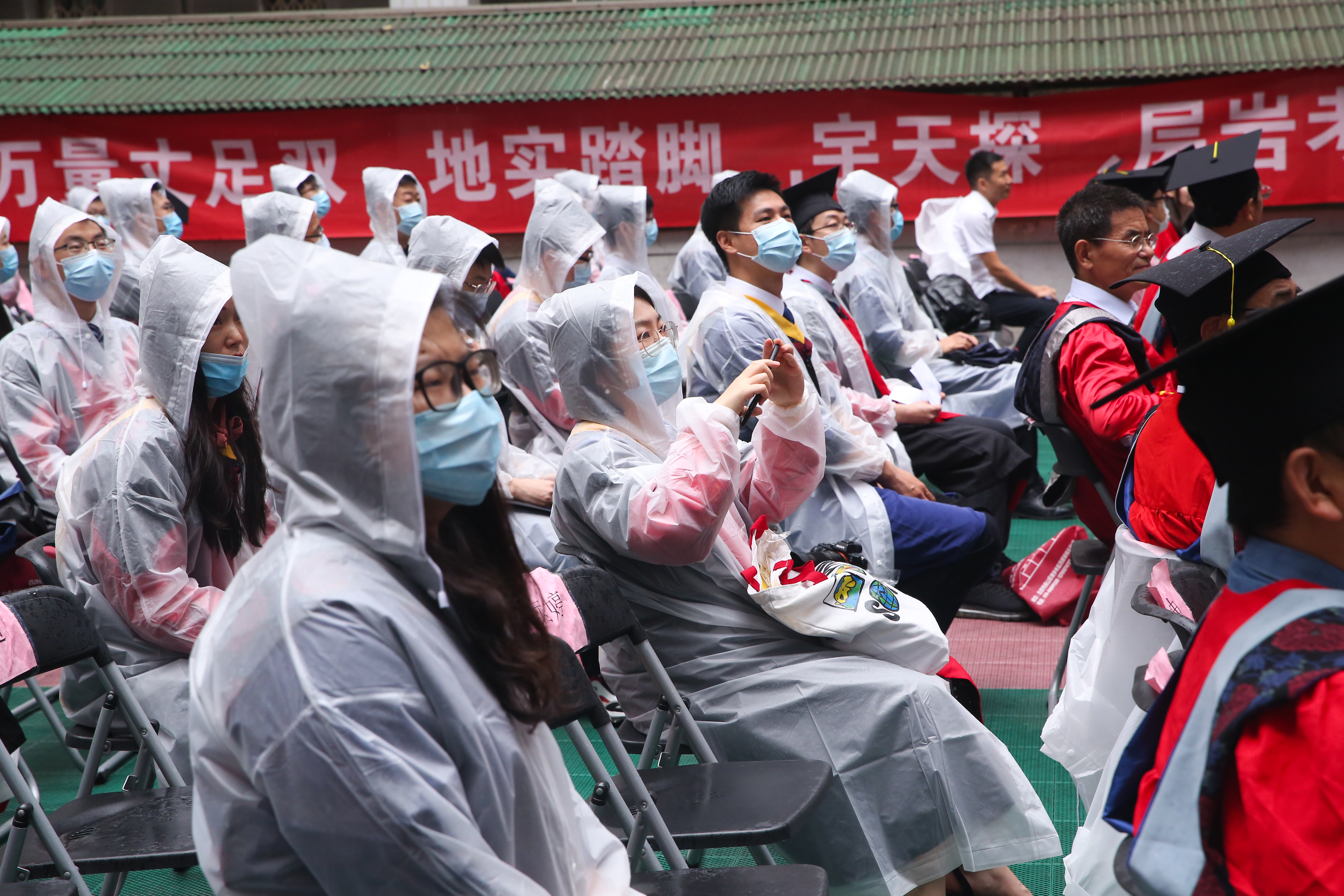 2020年毕业典礼在庄严的国歌声中正式开始。师生共同欣赏了2020届毕业生的燕园生涯回顾视频,新生定向越野、一二·九大合唱、艰苦的野外实习、多彩的班级活动……这一幕幕难忘的场景,是同学们在北大最美的青春记忆。恰逢细雨,同学们感动的泪水与雨水都交织在了一起。