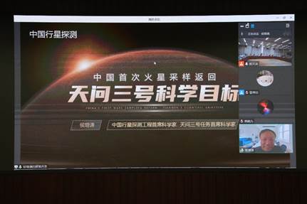在会议报告环节,侯增谦院士作题为“天问三号与火星探测”的报告,从火星科学研究现状、天文三号任务科学目标、生命痕迹探寻与着陆区预选、我国未来行星科学方向四个方面介绍了火星探测的进展,并指出“中国的行星探测需要不断壮大的高水平的科学队伍”,对“行星科学”的人才培养提出新的要求。
