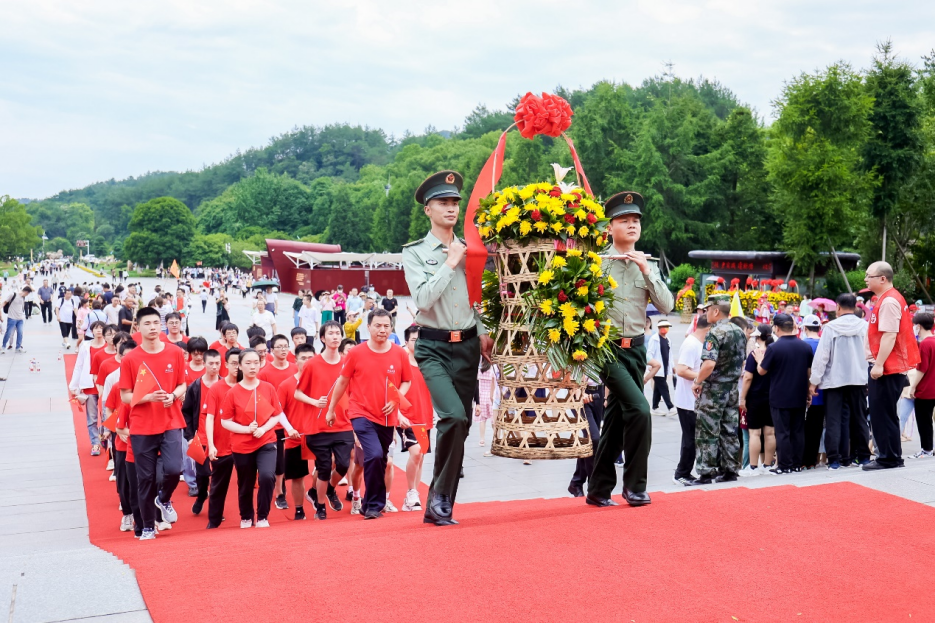 湖南长沙思政实践团全体师生在韶山毛泽东广场敬献花篮