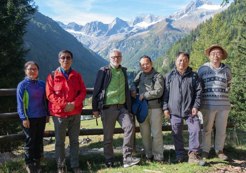 阿尔卑斯野外实习队一行前往Valmalenco进行学习考察。Valmalenco位于欧洲板块与非洲板块俯冲的构造线上,地质作用复杂,来自古欧洲板块与非洲板块的物质在这里混杂,是地质学研究的宝地。高耸的山巅昭示着造山运动的鬼斧神工,冰川将山脊削成刃状,远处的雪盖清晰可见,山下水草丰茂,安然坐落着一座小镇。