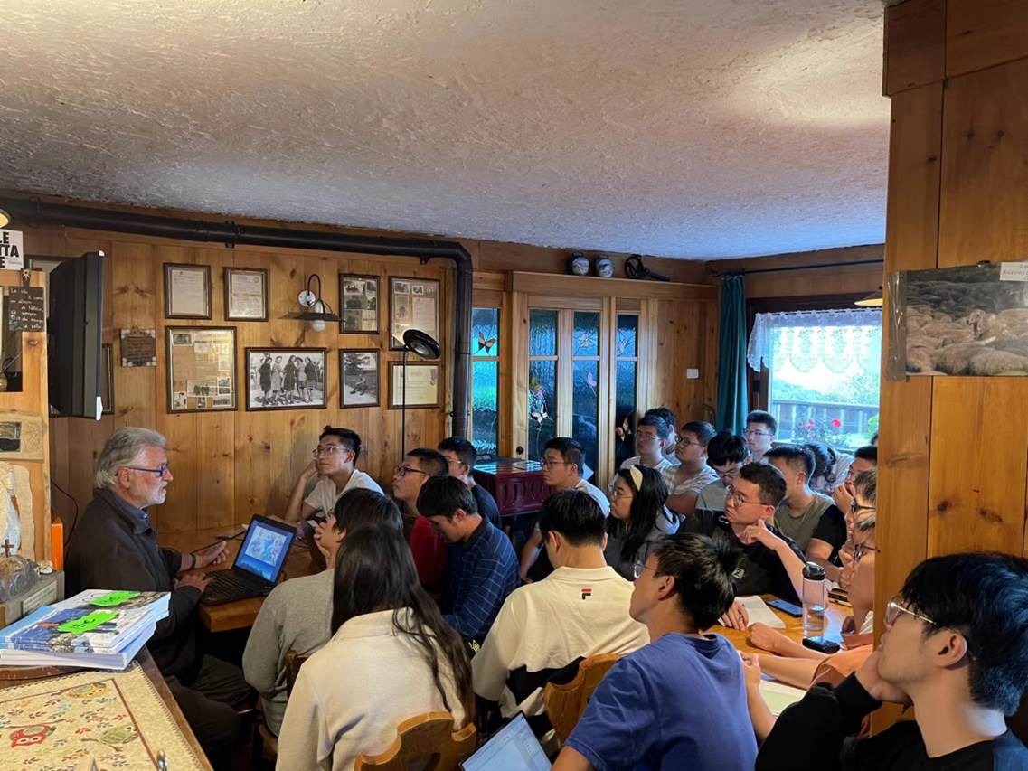 最后,经过一个半小时的下山路途,实习队伍回到了暂住地lodge。晚餐前,Andrea教授为我们带来了一场关于Grigna地质概况与古生物的精彩讲座,全体学生都听得聚精会神,并在会后进行了积极的讨论。