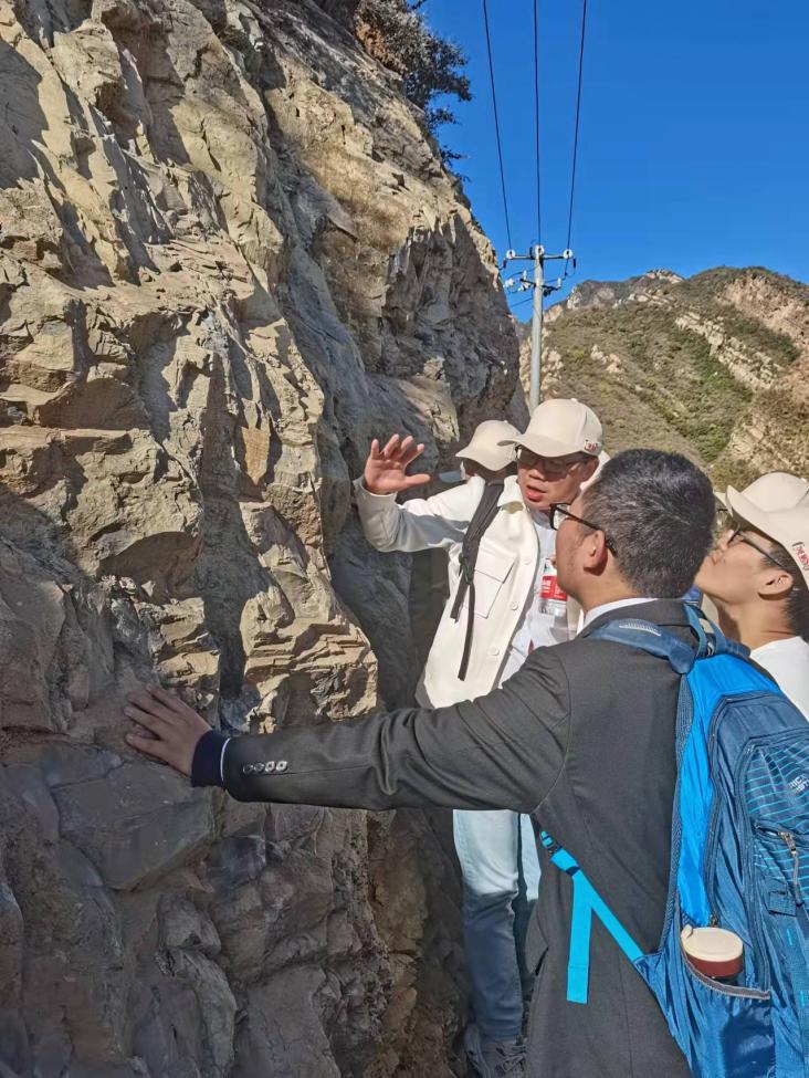从如何分辨断层岩到近距离观察岩石上的层理,再到拿起一块小岩石为同学们介绍河水冲来的少量砂砾沉积而成的白色透镜体结构,张志诚向同学们讲解了地质学考察和研究的基础知识,以及地质学考察和研究在不同层面、不同领域的意义,它不仅可以解开地球起源、演化、生命起源之谜,还能促进矿产行业、能源行业等的发展。