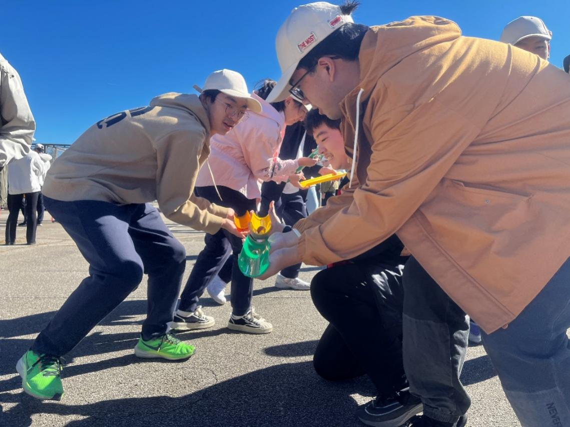 同学们排成整齐的方阵,在素拓教练团队的带领下,完成了多项策略性强、团队协作要求高的“超音速”“极速60秒”等素拓游戏,增强了团队意识与协调沟通能力,体会到了彼此合作的快乐和重要性。