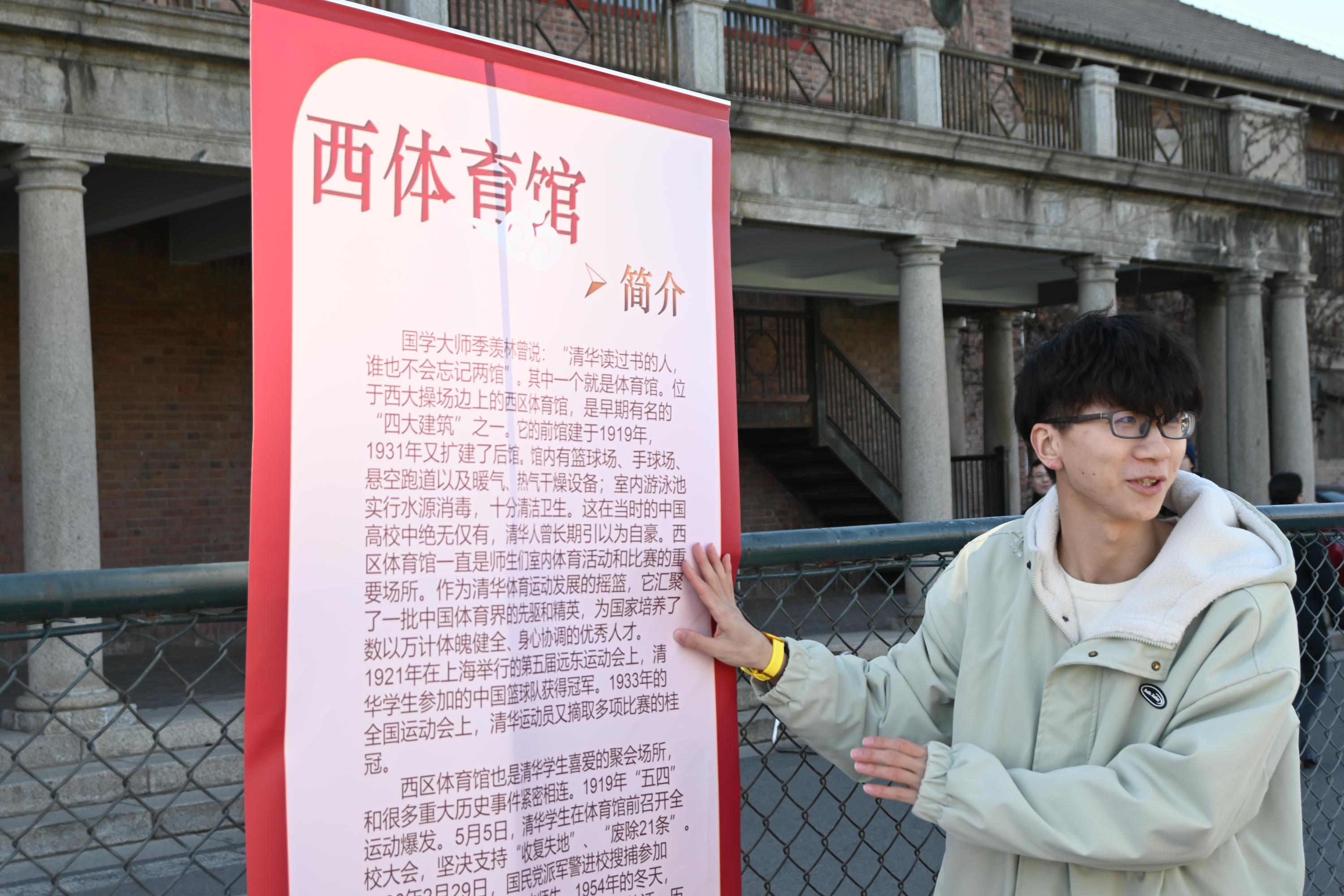 “育人至上,体魄与人格并重”,为了让同学们在强身健体的同时了解清华的标志性建筑以及其背后的故事,同学们精心策划并设计了清华校园版定向越野,站点包括了展现历史魅力的清华二校门、记录时间流转的日晷、文艺中心大礼堂、彰显体育传统的西体育馆、文献丰富的图书馆老馆、象征友谊的西南联大纪念碑和友谊常在石、走向现代科学的科学博物馆,每个站点有专门制作的立牌,清华的“讲解员”为大家声情并茂地讲解,答对题目还有精美的小礼品。同学们在轻松的氛围中收获了知识与美景,释放压力,健步如飞。