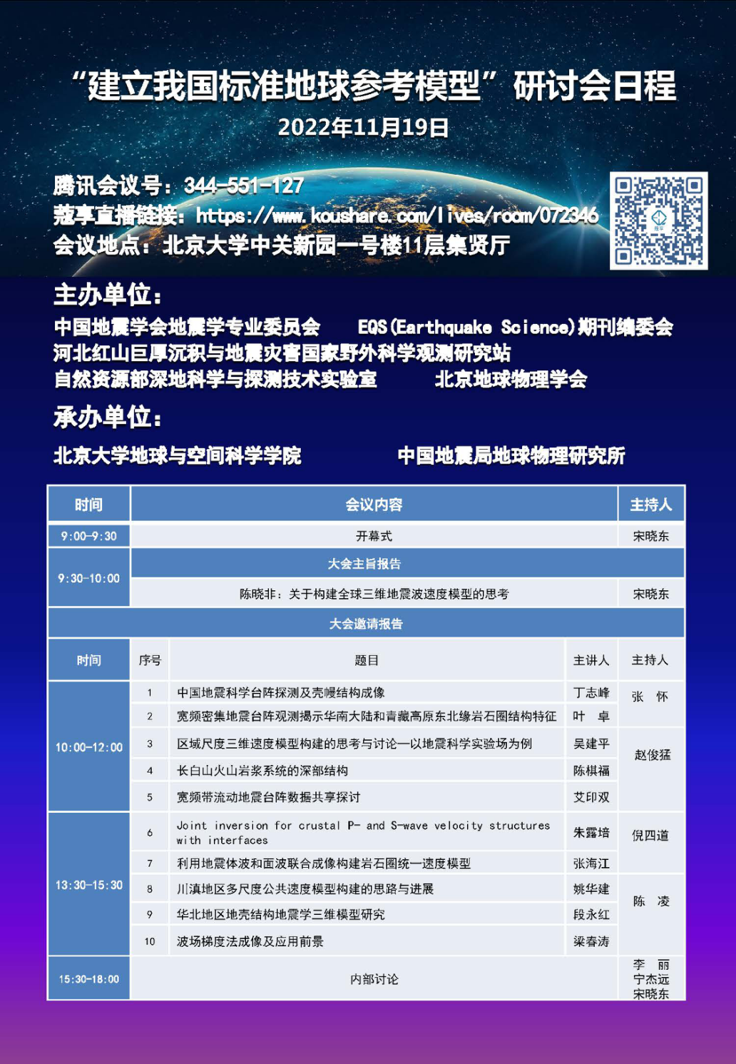 近年来,随着观测数据的增多和先进反演方法的出现,国内外专家反演获得了许多地球模型。为促进专家交流,建立我国标准地球参考模型,拟定于2022年11月19日召开“建立我国标准地球参考模型”研讨会。现将有关事宜通知如下。