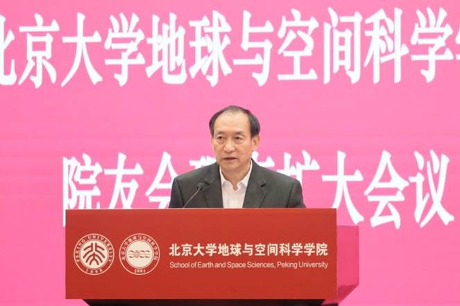 近几年取得的进展,重点提到了全国重点实验室获批、承办国际地球科学奥林匹克竞赛、成立地外样品研究中心等在学院发展、学科建设上具有重要意义的几个事件。他指出,学院的成绩离不开校友的支持,期望未来能与广大校友在学科建设、人才培养、社会服务等方面深化合作,号召广大院友们与学院一同为培养新一代地球科学人才贡献力量。