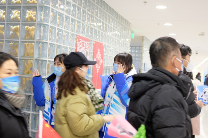 在冬奥会举办期间,武晓环担任了国家游泳中心赛事服务主管,负责管理“冰立方”南商业街区域的赛事服务工作,撰写赛事服务领域每日运行报告。南商业街是观众在场馆内的活动区,共设置了18个点位,武晓环的职责就是确保南商业街的赛事服务工作顺利运行,为了给到来的观众们提供良好的观赛体验,她的服务内容涉及到观众引导、信息咨询、失物招领、通行控制的方方面面。