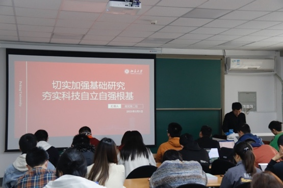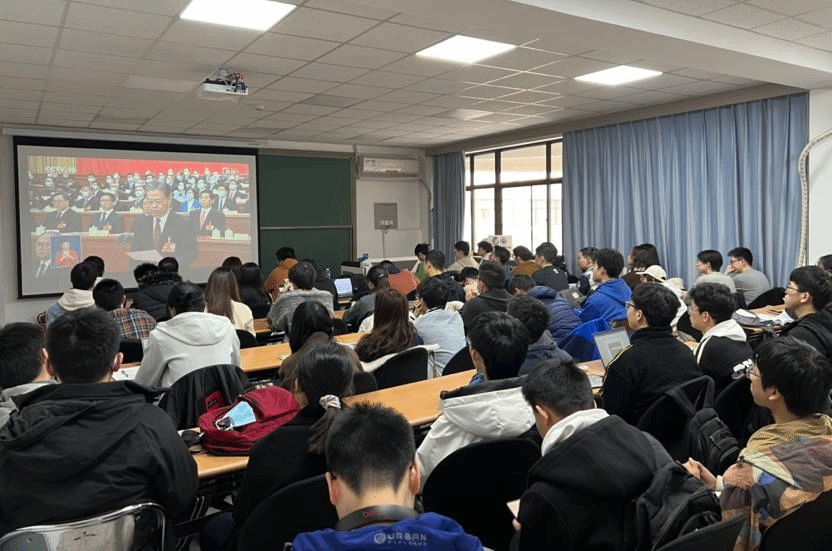 第40期党性教育读书班学员等学生骨干在理科二号楼2821集体观看大会直播,深入学习大会精神。学院党委副书记陈云超、专职辅导员王昱博参加活动。领队辅导员但浩文主持。