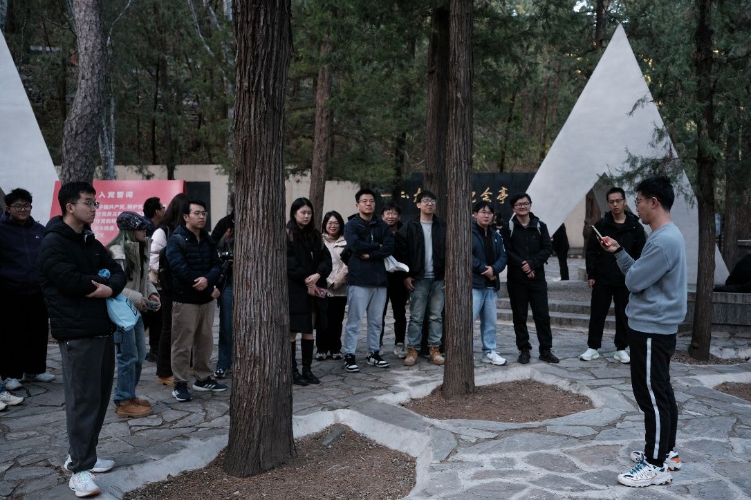 步履坚定,感悟精神传承。国家植物园(北园)所在的樱桃沟,曾是“一二·九”运动时期北平学联举办军事夏令营、秘密培训爱国青年的重要地点。同学们沿着苍松翠柏掩映下的沟谷步道前行,脚下是当年进步青年走过的“觉醒之路”。这条从“一二·九”运动纪念亭延伸出的路径,不仅是一次地理空间的行走,更是一次穿越时空的精神对话,让全体党员在步履之间感悟到革命前辈在国家危难之际所展现的觉醒意识与历史担当。