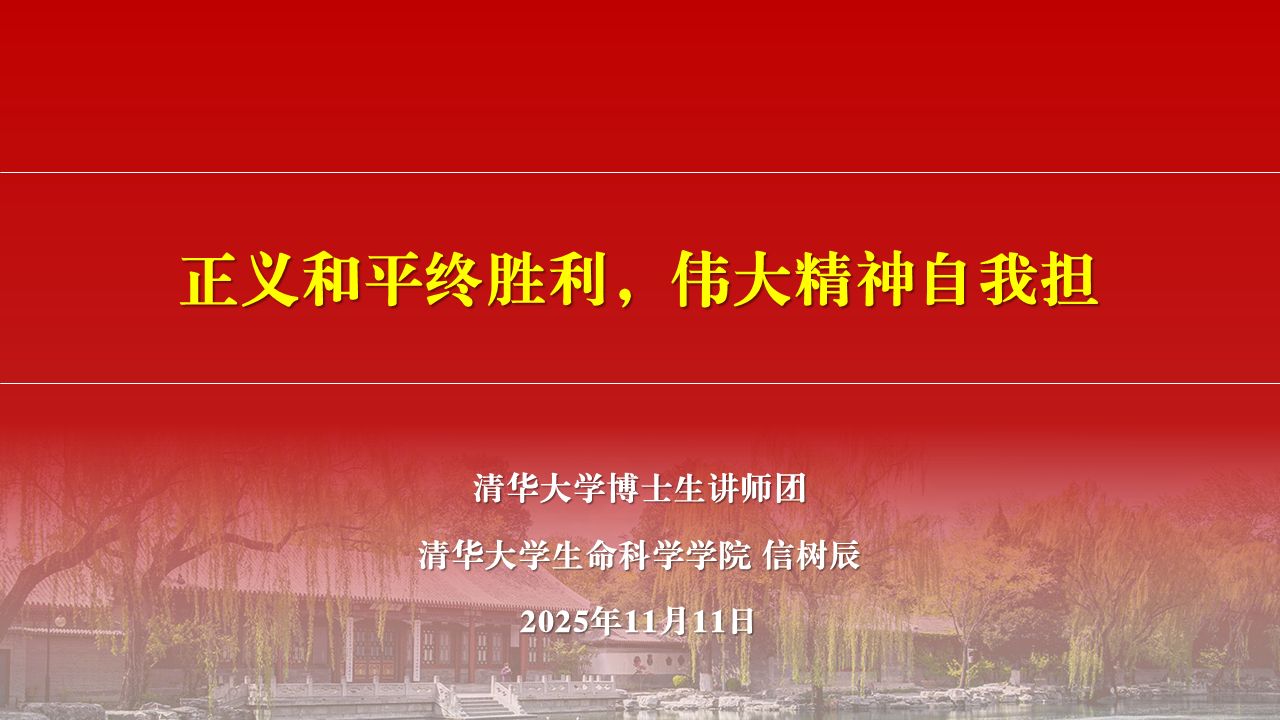 清华大学博士生讲师团讲师信树辰同志以亲历“九三”志愿服务为切入,围绕纪念抗战胜利80周年阐释“爱国情怀、民族气节、英雄气概、必胜信念”四维抗战精神,勉励青年“又红又专”,把论文写在祖国大地上,以“四个面向”攻关关键核心技术,在强国建设、民族复兴中砥砺担当、实干成才。