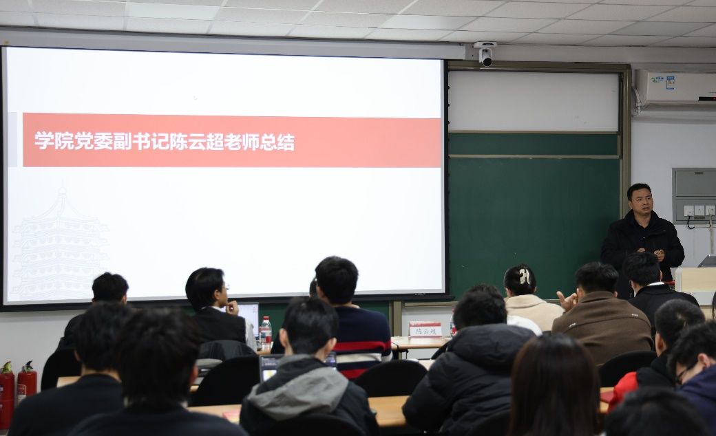 最后,陈云超老师作总结讲话。他代表学院党委对全体支委的辛勤工作表示感谢,并强调要深刻领会全会提出的重大理论观点和战略部署,将其与学科特色、科研实践紧密结合,做到学深悟透、融会贯通、真信笃行。陈云超进一步指出,全体学生党员骨干要以全会精神为指引,准确把握科研学习这一主责主业,将个人学术追求与科研实践融入国家科技创新战略布局,同时,要进一步强化党支部政治功能和组织功能,推动党建工作与立德树人、科研协同、社会服务深度融合,切实把理论成果转化为推进高质量党建发展的强大动力。