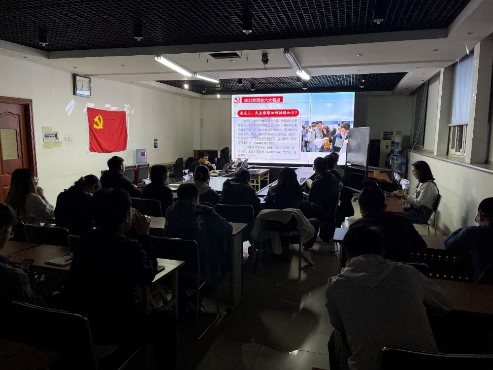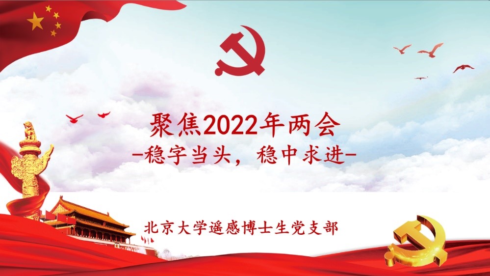 在冬奥分享环节后,结合近期两会热点,遥感博士生党支部副书记王子安就两会的六大看点,即“稳定经济大盘怎样发力?重要领域怎样稳中求进?民生保障如何持续加力?疫情防控怎样更精准?地方组织法怎么修?外部环境如何应对?”进行了专题分享。其中,关于重要领域怎样稳中求进,王子安针对脱贫攻坚和中央一号文件等相关内容进行了重点介绍,“在全面建成小康社会之后,我国进入扎实推动共同富裕的历史阶段。如何有效规划并探索路径,将成为重要的关注点;目前的农业发展,不光要抓好粮食生产和重要农产品供给,还要重视提高农民积极性;‘双碳’和新能源的布局也将会影响新的业态模式”。