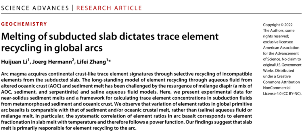 最近张立飞教授课题组与瑞士波恩大学Joerg Hermann教授合作,在俯冲带岛弧岩浆成因岩浆方面研究取得重要研究进展,提出了岛弧玄武岩浆俯冲板片熔融新模式。该项成果于2022年1月12日发表在Science Advances上(Li et al., Sci. Adv. 8, eabh2166 (2022) 12 January 2022, //doi.org/10.1126/sciadv.abh2166),李慧娟副研究员是该文的第一作者,张立飞教授是通讯作者,木瓜视频