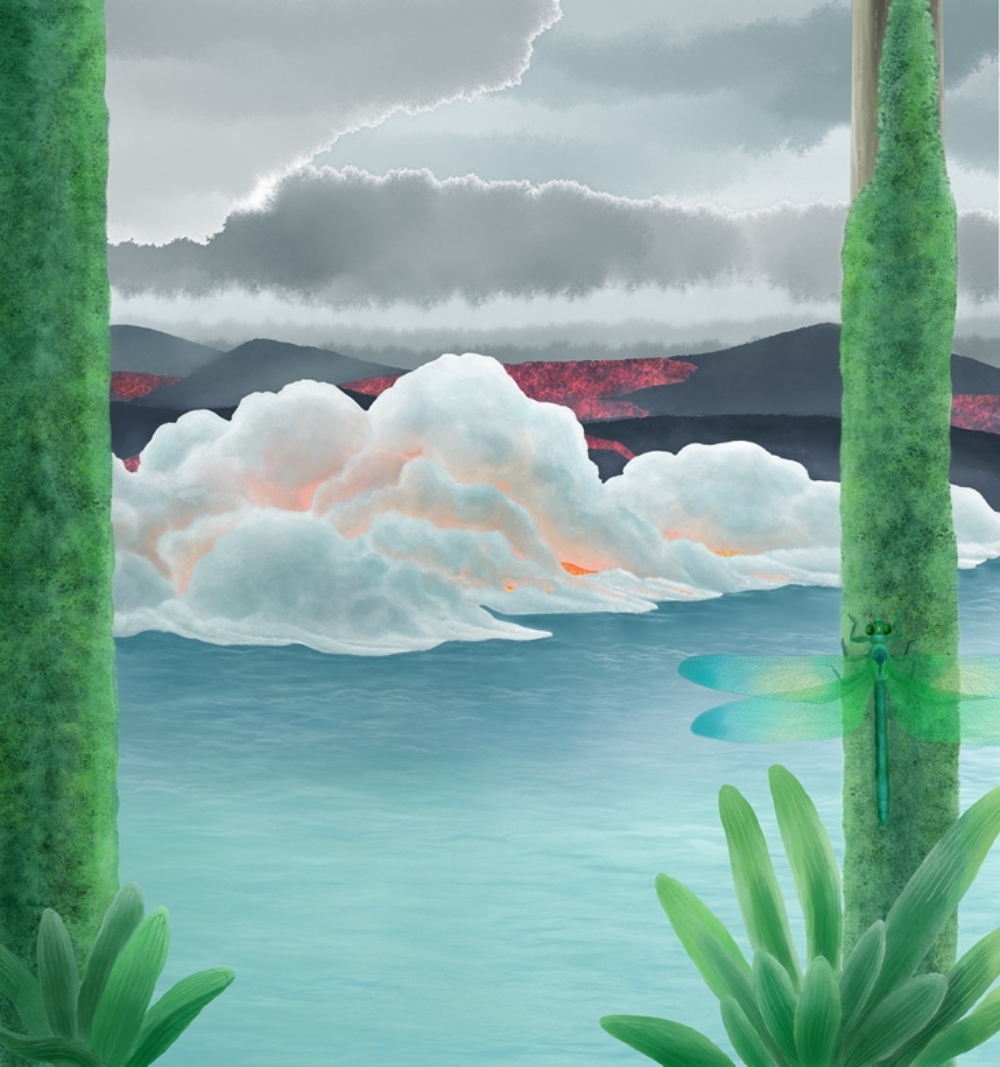 图1.二叠纪末大灭绝想象图。2.5亿年前致命的西伯利亚熔岩流入大海,史前生命的最后一瞥。绘图:H. Duan