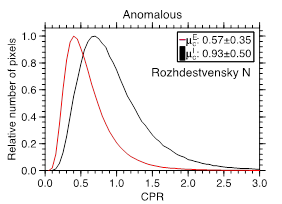 为解决上述争议,印度 2008 年发射的“月船”1 号、 美国 2009 年发射的月球侦察轨道器(LRO)上分别搭载了微型合成孔径雷达(Mini-RF),用于探测月球极区是否存在大量水冰。Mini-RF科学团队发现月球极区存在一类异常撞击坑,其边缘以内圆极化比(CPR)远高于边缘以外,这与普通撞击坑的回波分布不一致,这类撞击坑被称为雷达异常撞击坑(图2)。绝大部分雷达异常撞击坑都位于永久阴影区,其数量随着纬度增加而变多。这些被Mini-RF科学团队解释为月球极区存在大量水冰的证据,初步估算月球北极存在约6亿吨水冰。由于雷达波与月表相互作用非常复杂,引起雷达回波异常的因素有很多,Mini-RF团队并没有从机理上解释雷达回波异常的原因。
