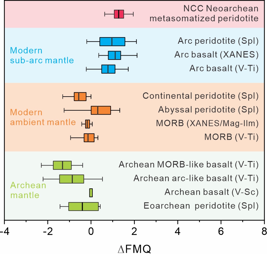 地幔氧化还原状态如何演化一直存在争议:一些学者认为地幔氧化还原状态从地球早期至今未发生明显变化;另一些学者认为地球早期地幔相对还原,其氧逸度随时间逐渐升高。而在这些争议之外,太古宙地幔是否可以被局部显著氧化并不明确。针对这一重要科学问题,研究了华北克拉通冀东地区太古宙地幔橄榄岩的氧化还原状态。这些太古宙地幔橄榄岩来自于显著氧化的新太古代俯冲带地幔,对研究太古宙地幔氧化还原状态、新太古代板块构造和大氧化事件三者之间的关系具有重要意义,也是首次报道有明确氧化信号的太古宙地幔样品。